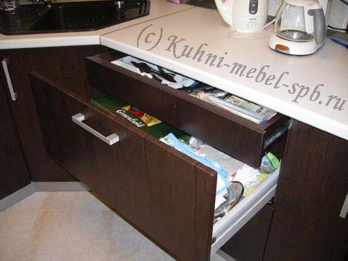 Ящики тандем-бокс с доводчиком это еще не все: открыв большой ящик 355мм можно получить доступ к внутреннему ящику для столовых приборов!